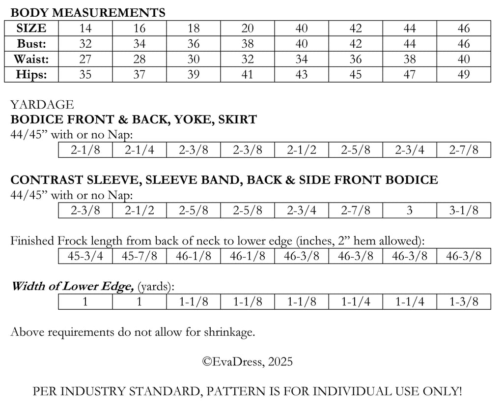PATTERN NOT IN YOUR SIZE? Upon request, I am happy to furnish an additional schematic showing where to adjust the pattern pieces with instructions on how to re-size the pattern.