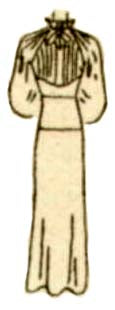 Best fabrics for this design: For Sleeve Contrast - Silk Georgette (original recommendation), Chiffon or Sheer Gauze. For the Frock - Silk Crêpe (original recommendation), Satin, Crêpe de Chine, Moiré in rayons, Celanese or Bemberg or any other fabric previously suggested.