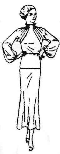 Best fabrics for this design: For Sleeve Contrast - Silk Georgette (original recommendation), Chiffon or Sheer Gauze. For the Frock - Silk Crêpe (original recommendation), Satin, Crêpe de Chine, Moiré in rayons, Celanese or Bemberg or any other fabric previously suggested.